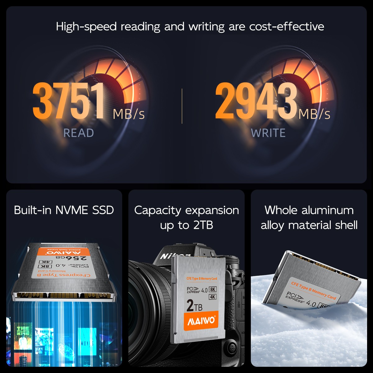 MAIWO M6 CFexpress Type-B Memory Card Compatible with Nikon Z6/Z9, Canon R3/R5 for High-Speed 8K Video and Continuous Shooting.![]()