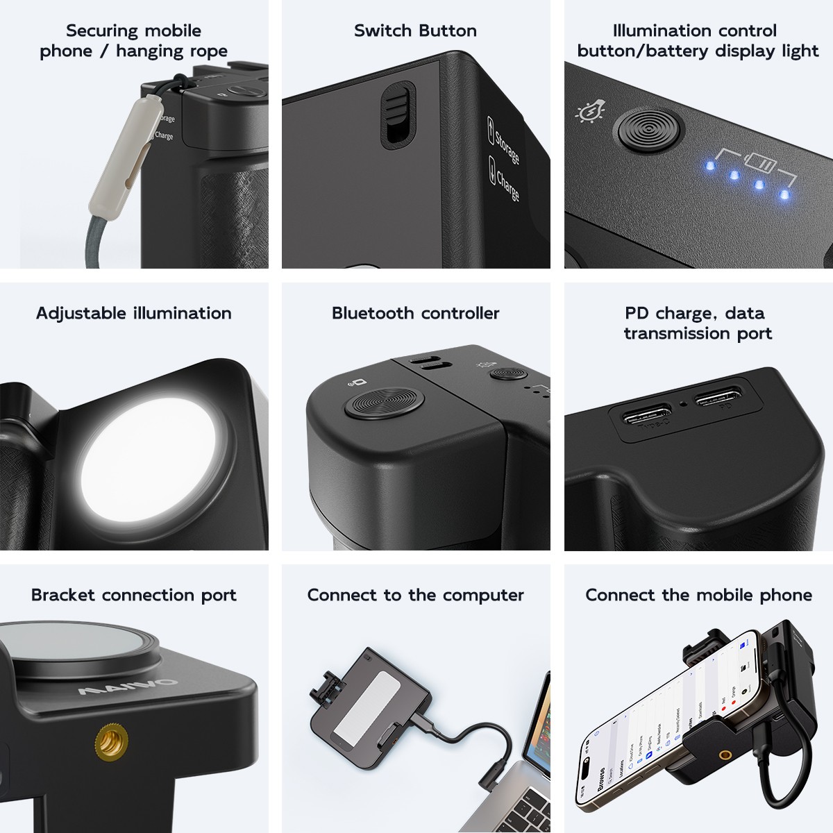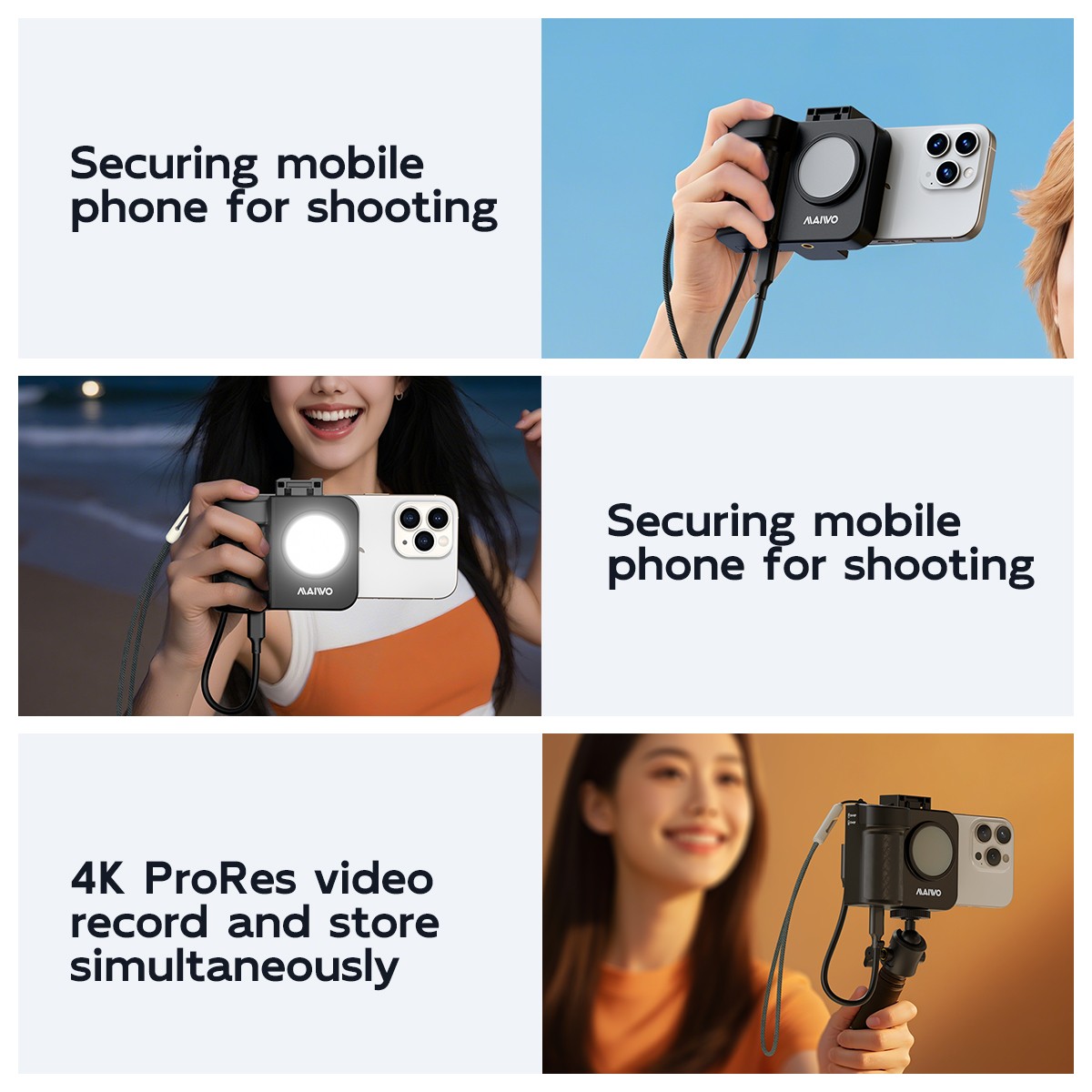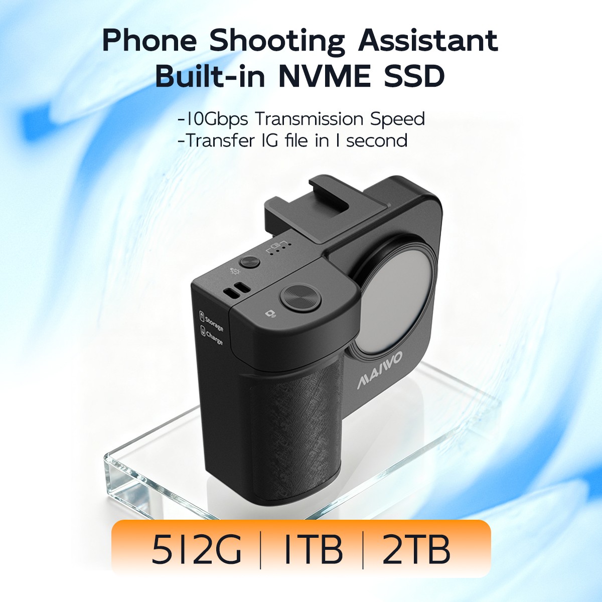 MAIWO Portable SSD with Wireless Remote Shooting Grip - Large Capacity, Bluetooth-Enabled Horizontal/Vertical Shooting Stabilizer for Phones, M2 Model![]()